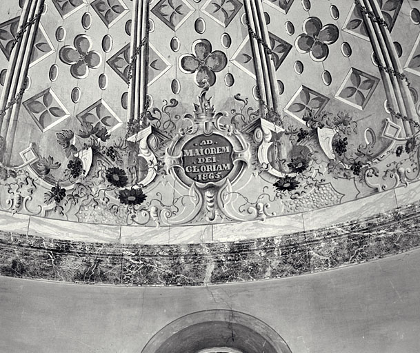 Le décor peint du choeur. Détail et inscription.