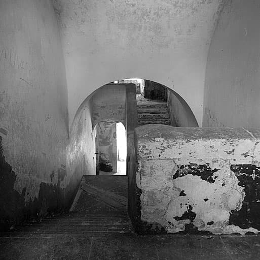 Caserne. Cage d'escalier vue de l'étage supérieur.
