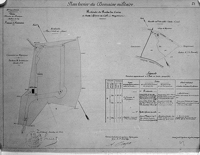 Plan terrier du domaine militaire. Redoute de Roche-la-Croix et recette inférieure du Cable à Meyronnes.