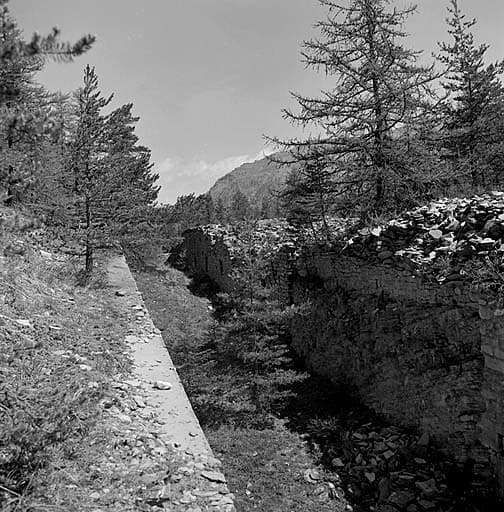 Front ouest. Vue oblique de l'escarpe et du fossé prise depuis la contrescarpe.