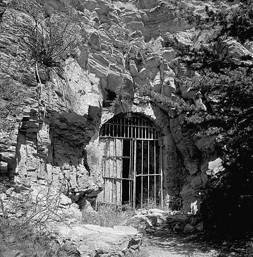 Sortie sud du tunnel et du magasin à poudre sous roc.