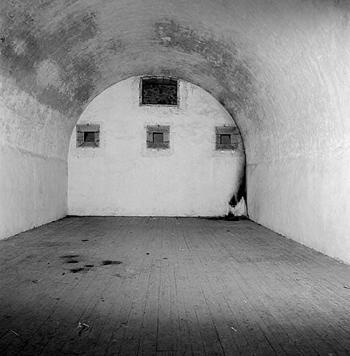Magasin à poudre sous roc. Vue intérieure de la chambre à poudre. Au fond, lucarnes des lanternes d'éclairage.