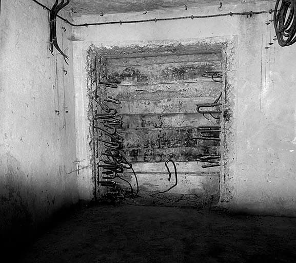Bloc 6. Etage inférieur. Baie réservée pour le projecteur et obturation provisoire en béton.
