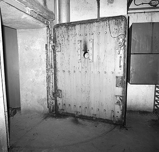Bloc 6. Etage supérieur. Vue intérieure. Porte blindée d'isolement des chambres de tir.