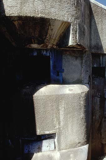 Bloc 5. Détail de façade. A gauche, embrasure du mortier de 75 de gauche et, en dessous, embrasures de 81 mm.