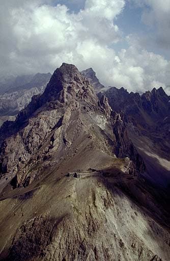 Vue aérienne prise du sud. Derrière, sommet de la Meyna.