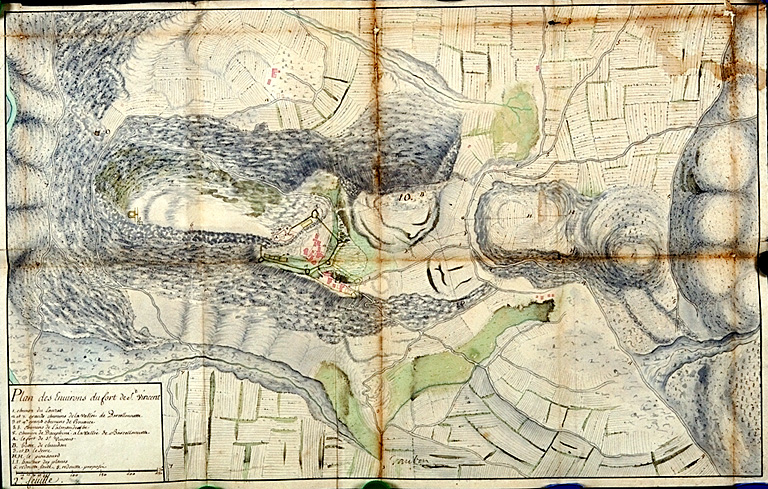 Plan des environs du fort de St-Vincent. / Dessin, signé Vauban, 1700. Service historique de la Défense, Vincennes : Fonds du Génie. Dépôt des fortifications, Tournoux, article 8, section 1, carton 1, pièce 4, feuille 2.