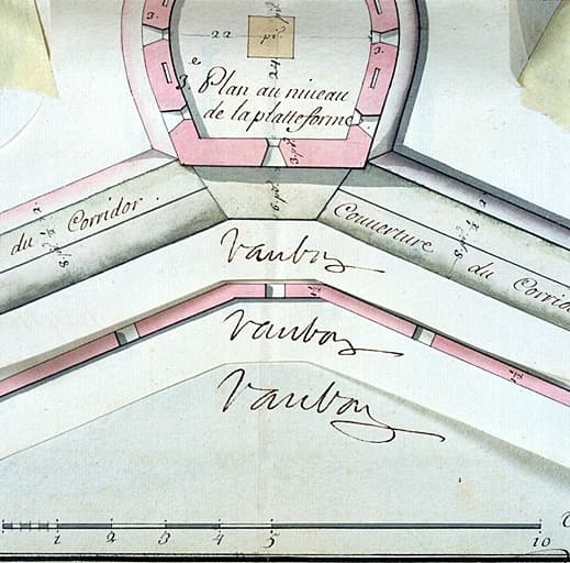 Plans et profil des tours de l'enceinte de St-Vincent pour servir à leur construction. 1700. Détail : signature de Vauban.
