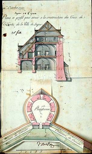 Plans et profil pour servir à la construction des tours de l'enceinte de la ville de Seyne. 1700