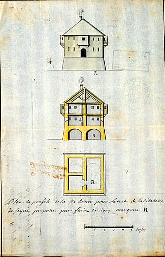 Plan et profils de la redoute pour la teste de la citadelle de Seyne proposé pour faire en 1705. 1704