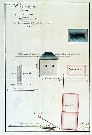 Place de Seyne. Projet pour 1820. Bâtiments militaires. Pour placer les chevaux à la grande tour cotée 9. 1819