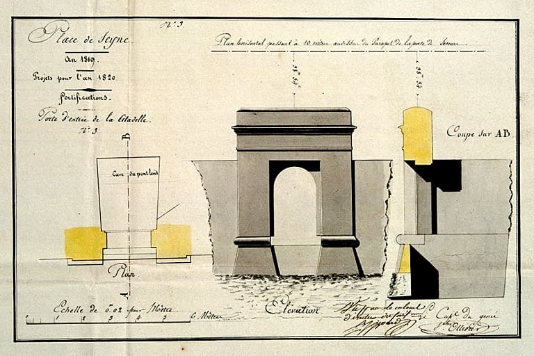 Place de Seyne. Projet pour 1820. Fortifications. Porte d'entrée de la citadelle. 1819