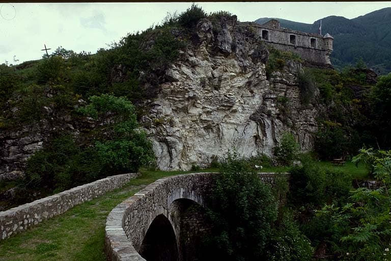 Pont de Saint-Roch (sur le Verdon, ancienne route de Provence) vu de l'est. A droite, le fort de France.