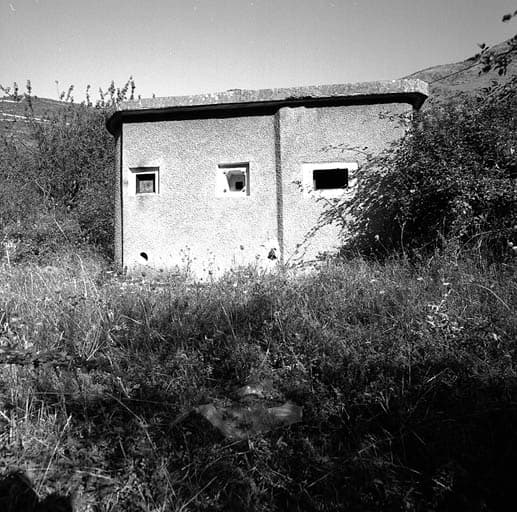 Casemate d'instruction. Façade. A droite trémie JM n° 1. A gauche, créneaux FM.