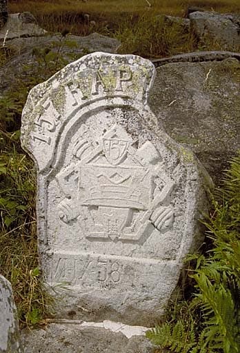 Pierre sculptée représentant l'insigne du 157e régiment d'artillerie de position daté du 6.9.1938.