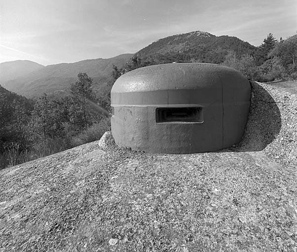Bloc 3 (observatoire). La cloche V.D.P. vue sur le côté gauche. Derrière, le mont Barbonnet.