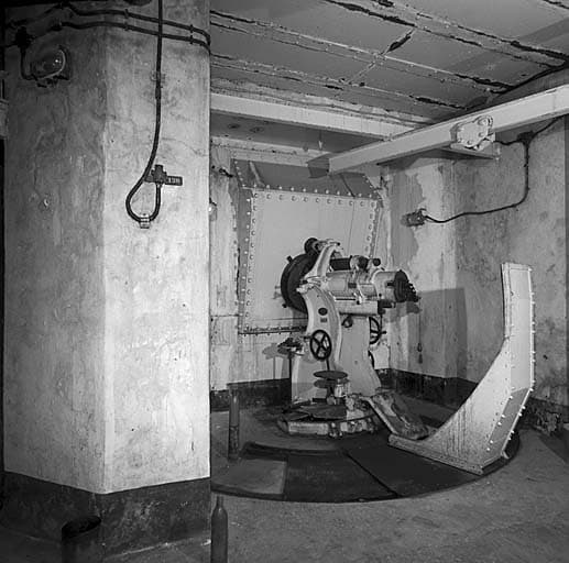 Bloc 2. Etage supérieur. Canon obusier de 75 M 29. Vue arrière gauche.