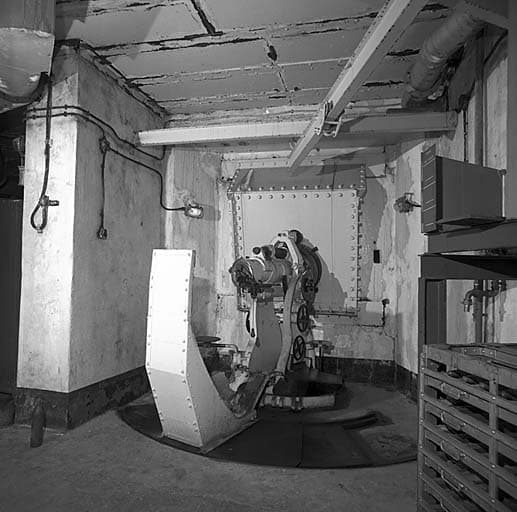 Bloc 2. Etage supérieur. Canon obusier de 75 M 29. Vue arrière droite.