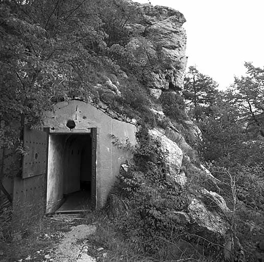 Entrée de l'ouvrage. Au-dessus de la porte, orifice de la prise d'air.