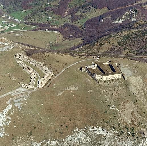 Vue aérienne de situation prise du sud. A droite, le fort Central.