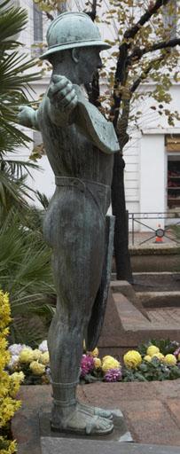 Soldat de la Première Guerre mondiale représenté nu à l'antique mais coiffé du casque des Poilus.