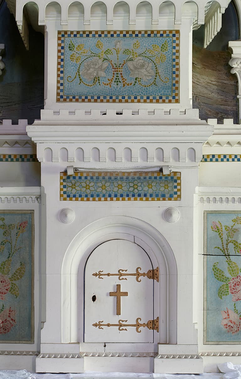 Autel de la Vierge. Tabernacle et thabor orné d'un décor peint imitant la mosaïque.