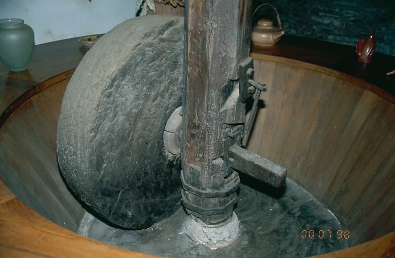 Moulin à huile. Meule sur champs.