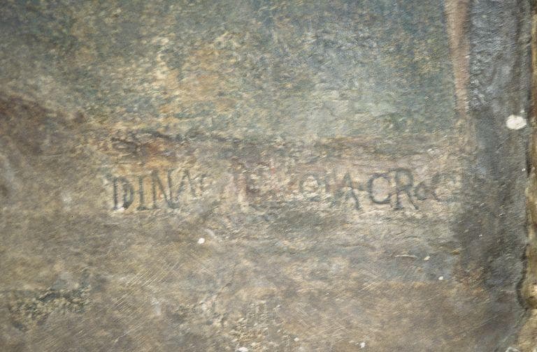 Inscription figurée sous la Vierge à l'Enfant allaitante.