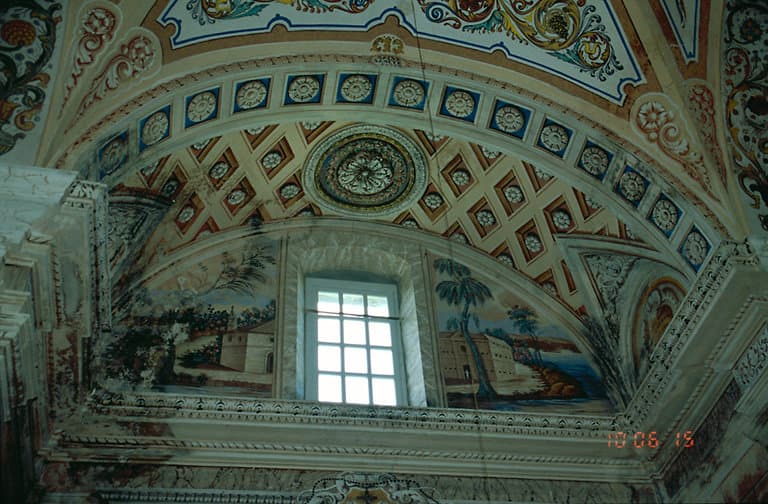 Décor peint ornant la voûte de la chapelle secondaire de saint François d'Assise.