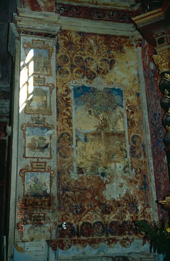 POP | Plateforme ouverte du patrimoinepeintures monumentales : Moïse, Adoration des Mages, Fuite en Egypte, saint Pierre, saint Louis évêque, saint Bonaventure, saint François d'Assise, ornementation