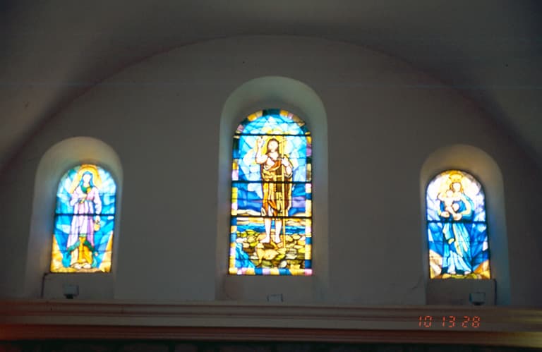 verrière : Vierge à l'Enfant, saint Jean-Baptiste, sainte Marthe