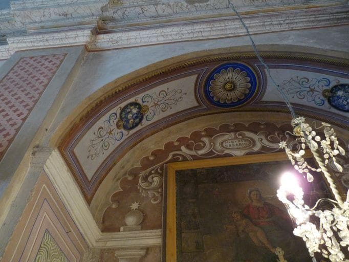 Vue partielle du décor peint ornant la chapelle de la confrérie du Rosaire.
