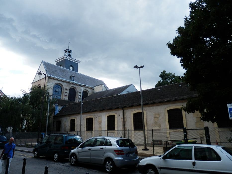vue partielle du chevet de l'église et bâtiment de l'ancien charnier depuis la rue Charrière