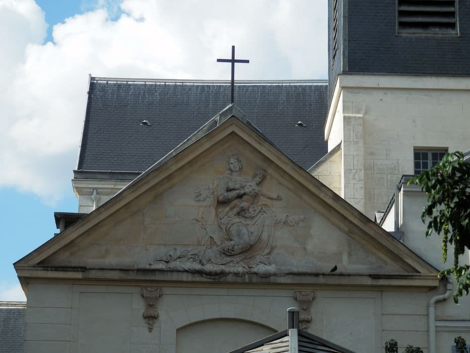 fronton du transept sud : la Vierge et l'Enfant par Jean-Baptiste Goy sculpteur et curé de l'église Sainte-Marguerite