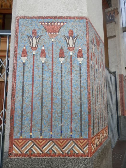 façade sur le boulevard Magenta, détail des décors de mosaïque