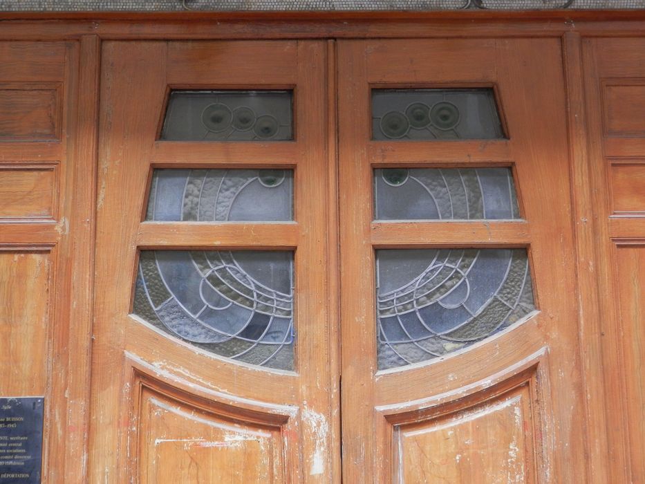 façade sur rue, porte d’accès, détail des verrières de la partie supérieure