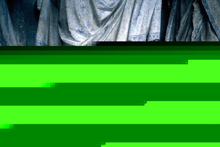 Façade occidentale, portail dit du Beau Dieu : tympan, quatrième registre, représentant le Christ juge. Détail : pieds du Christ.