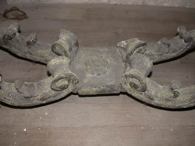 Console à la coquille, avant restauration : tablette d'entrejambes.