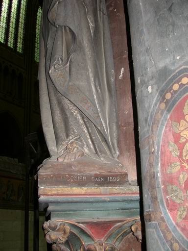Signature et date sur le socle de la statue : Jacquier Caen 1892.