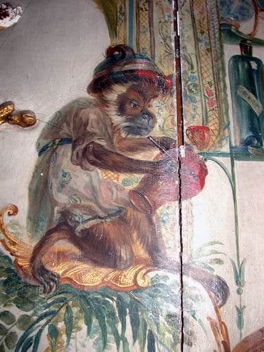 Singe peignant une céramique (état en 2005).