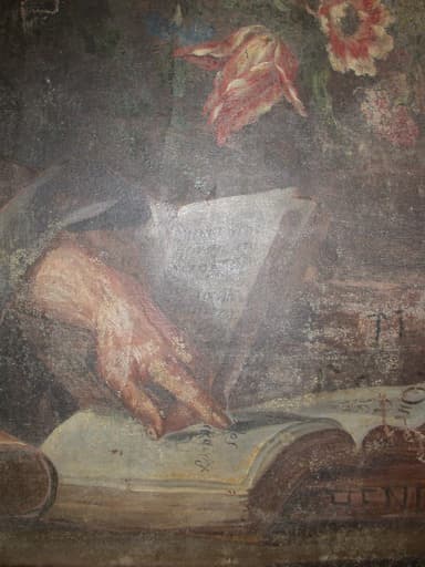 Coin inférieur droit du tableau avant restauration (atelier I. Auclair, 2005).