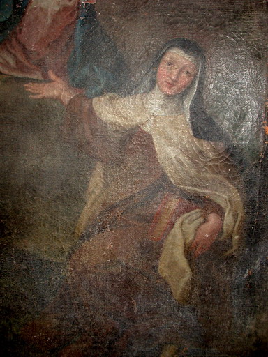 tableau : la Vierge remet le scapulaire à saint Simon Stock et à une carmélite