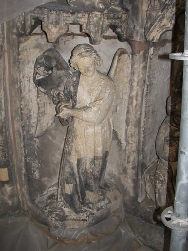 Relief de voussure, côté ouest du portail, avec essai de nettoyage : ange thuriféraire.