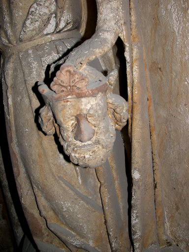 Relief de voussure, côté est du portail, en cours de nettoyage : Judith portant la tête d'Holopherne.