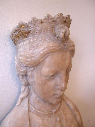 statue : Vierge à l'Enfant assise, en albâtre