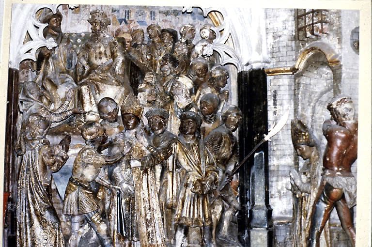 Choeur, clôture sud : hauts-reliefs représentant la Légende de saint Firmin. Détail : Firmin baptisant les Amiénois.