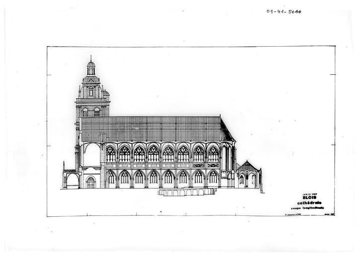 POP | Plateforme ouverte du patrimoineCathédrale Saint-Louis : Coupe longitudinale (réduction).