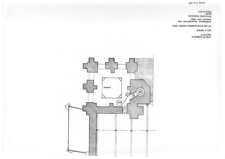 POP | Plateforme ouverte du patrimoineCathédrale Saint-Louis : TRAVAUX DE MISE EN SECURITE : plan du clocher niveau combles de la nef (4)