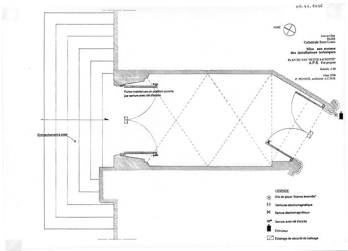 POP | Plateforme ouverte du patrimoineCathédrale Saint-Louis : TRAVAUX DE MISE EN SECURITE, modification des issues : plan du sas de la petite sacristie A P S (état proposé)