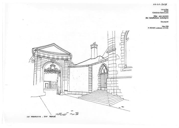 Cathédrale Saint-Louis : TRAVAUX DE MISE EN SECURITE, modification des issues : vue perspective A P S (état proposé)